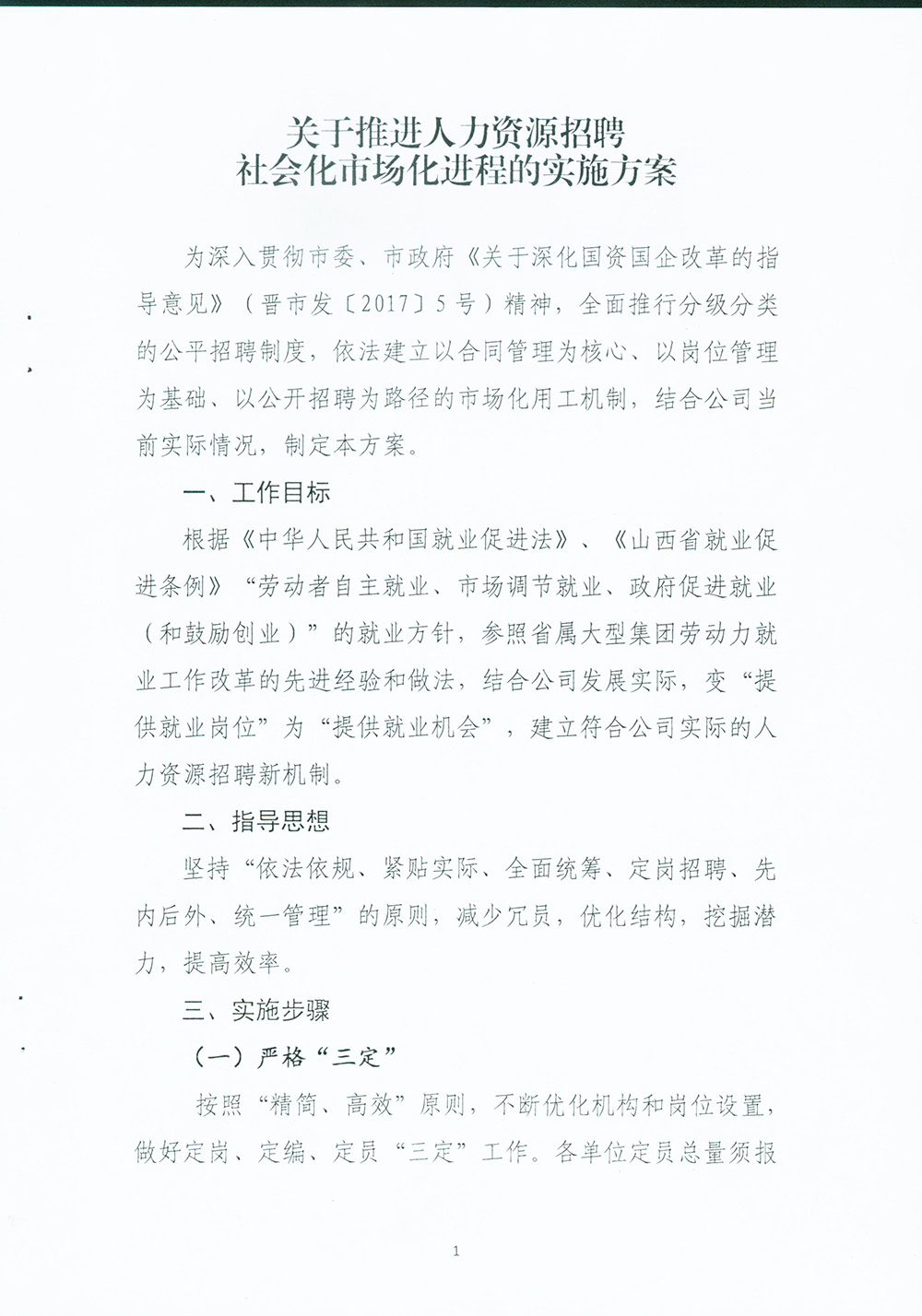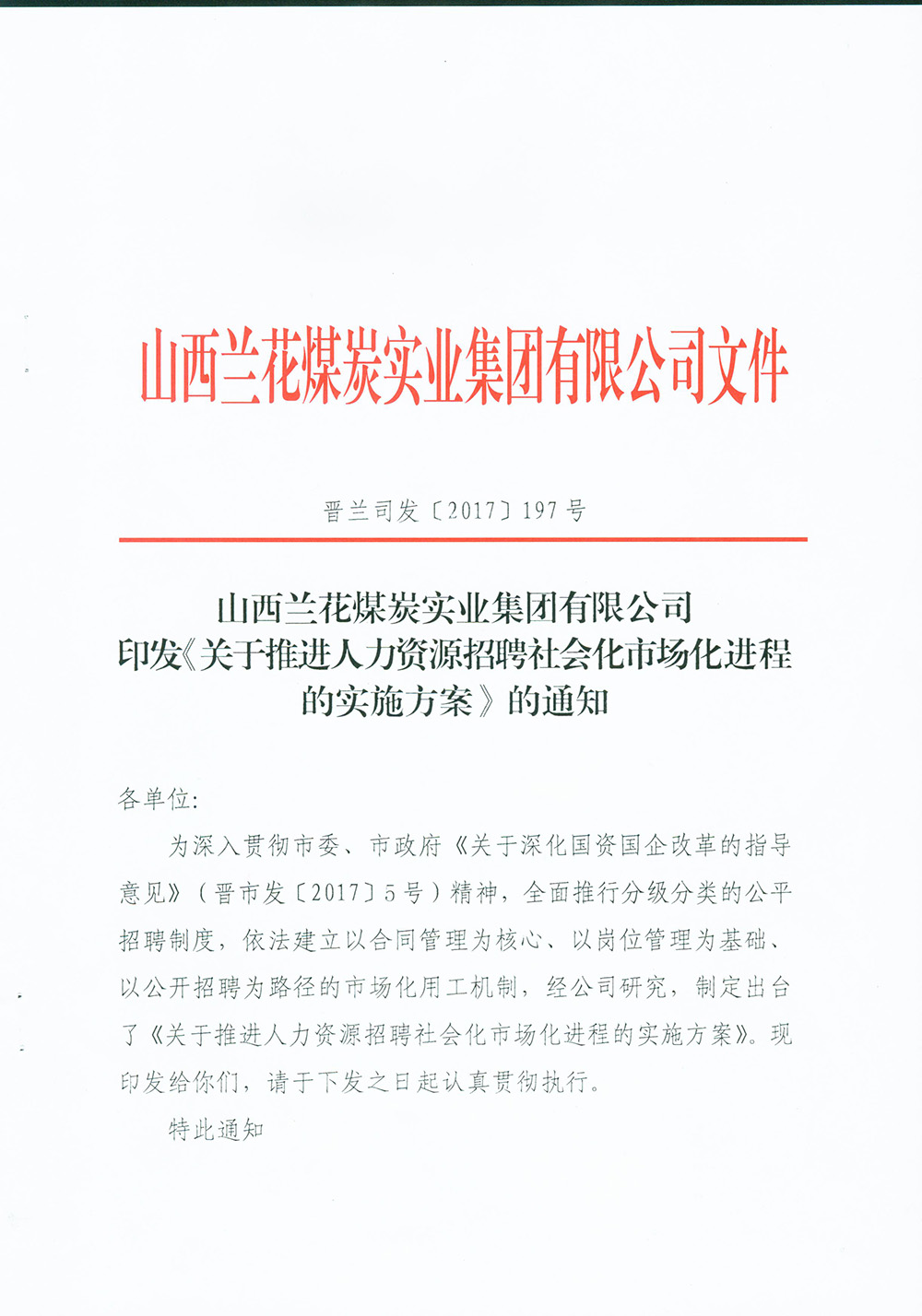 兰花集团《关于推进人力资源招聘社会化市场化进程的实施方案》